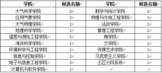(一)各学院要按照《南京信息工程大学学生先进个人和先进集体评比办法(修订)》规定进行评选和推荐,坚持标准,全面衡量,保证质量。推荐先进个人候选人时作为“三好学生”推荐或作为“优秀学生干部”推荐由学院自定。
